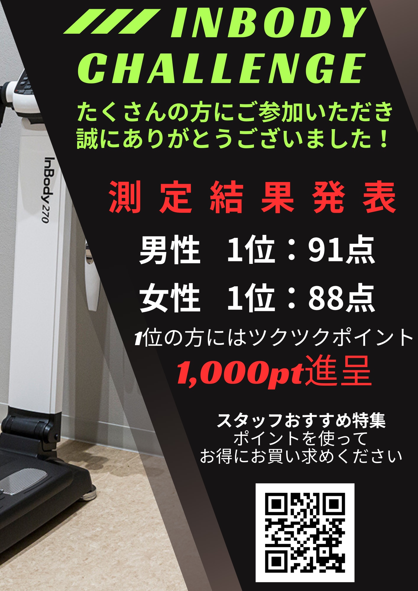 10月1日~20日にかけて行われたINBODYチャレンジが終了し、結果の集計が終了しました。
