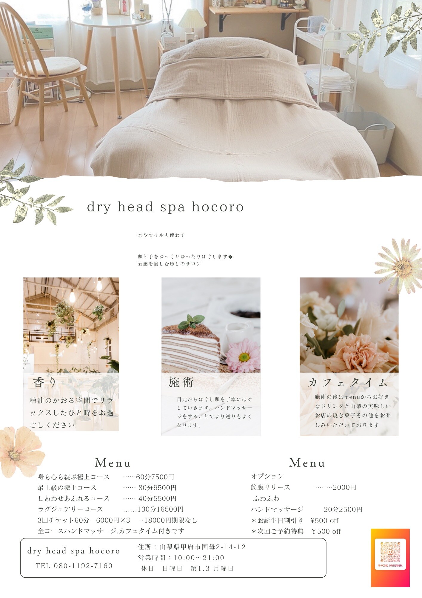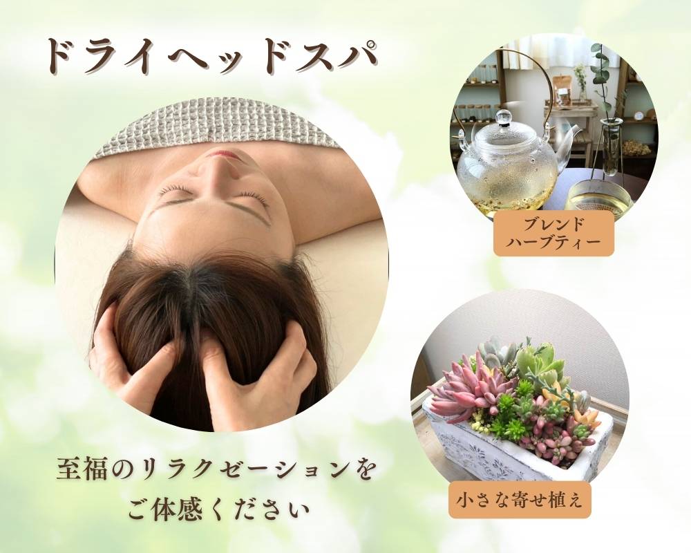 心地良くゆるむ「ドライヘッドスパ」を体感してみませんか?「ハーブティー」や「小さな寄せ植え植物」も販売いたします。