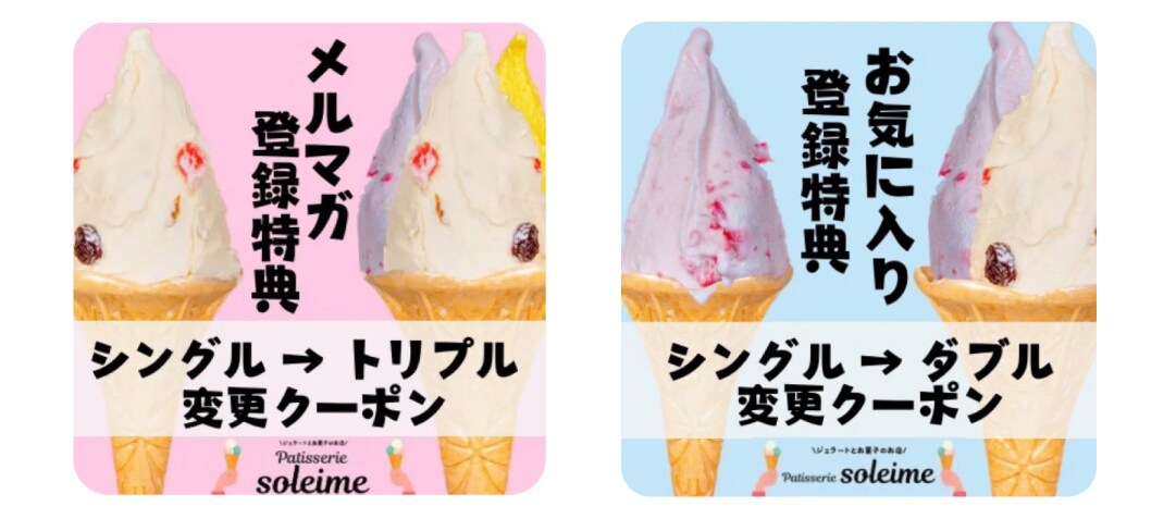 アプリ登録(無料)でソレイムさんをお気に入り登録するとシングルジェラートがダブルジェラートに!