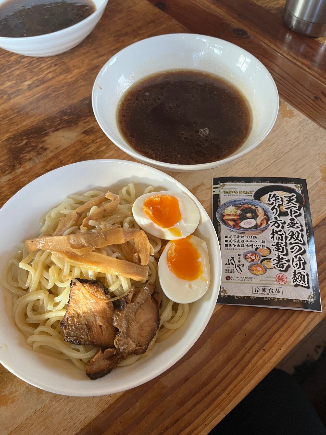 つけだれの中にチャーシューやメンマも入っているのでお好みで卵やネギを用意すれば完璧‼️