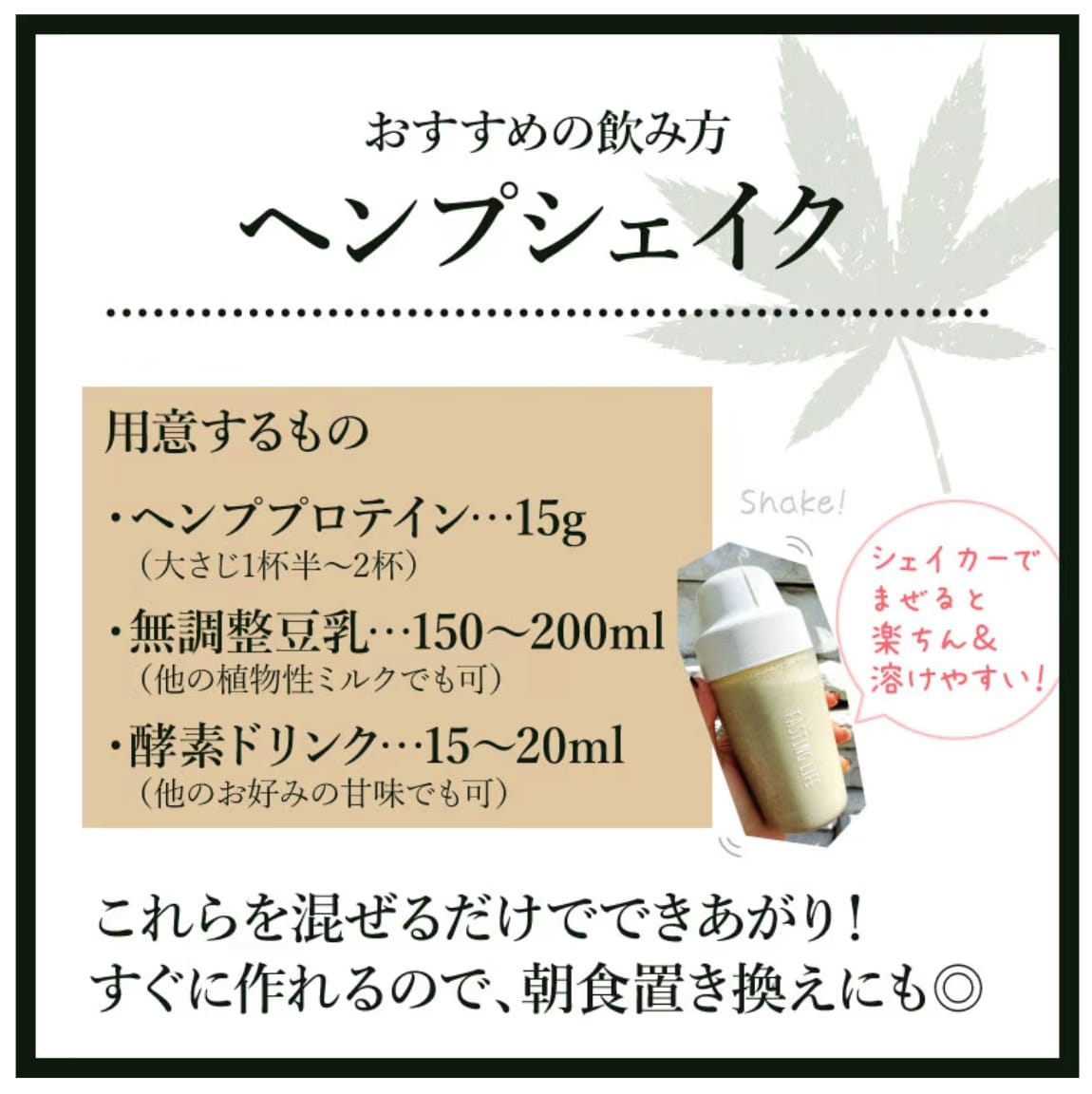 有機麻の実粉末だけを使用したプロテインです。