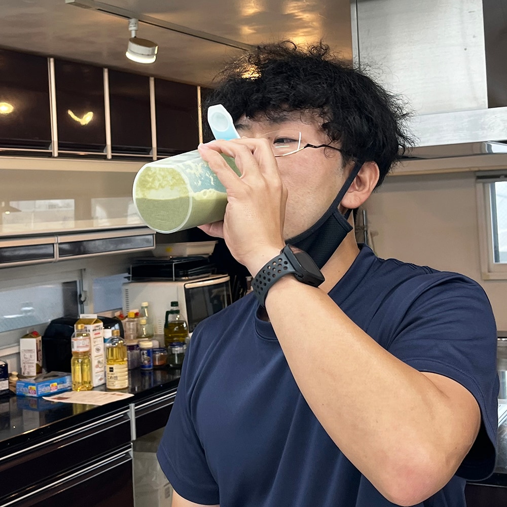 ▲日ごろから筋トレを欠かさず、プロテインや栄養サプリを取り入れている
