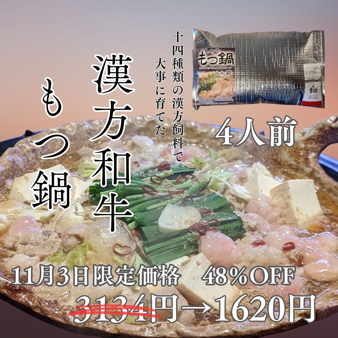 11月3日(日)6:00 通販スタート!!『幸之助の日』限定商品は【漢方牛もつ鍋】ほぼ半額です!!