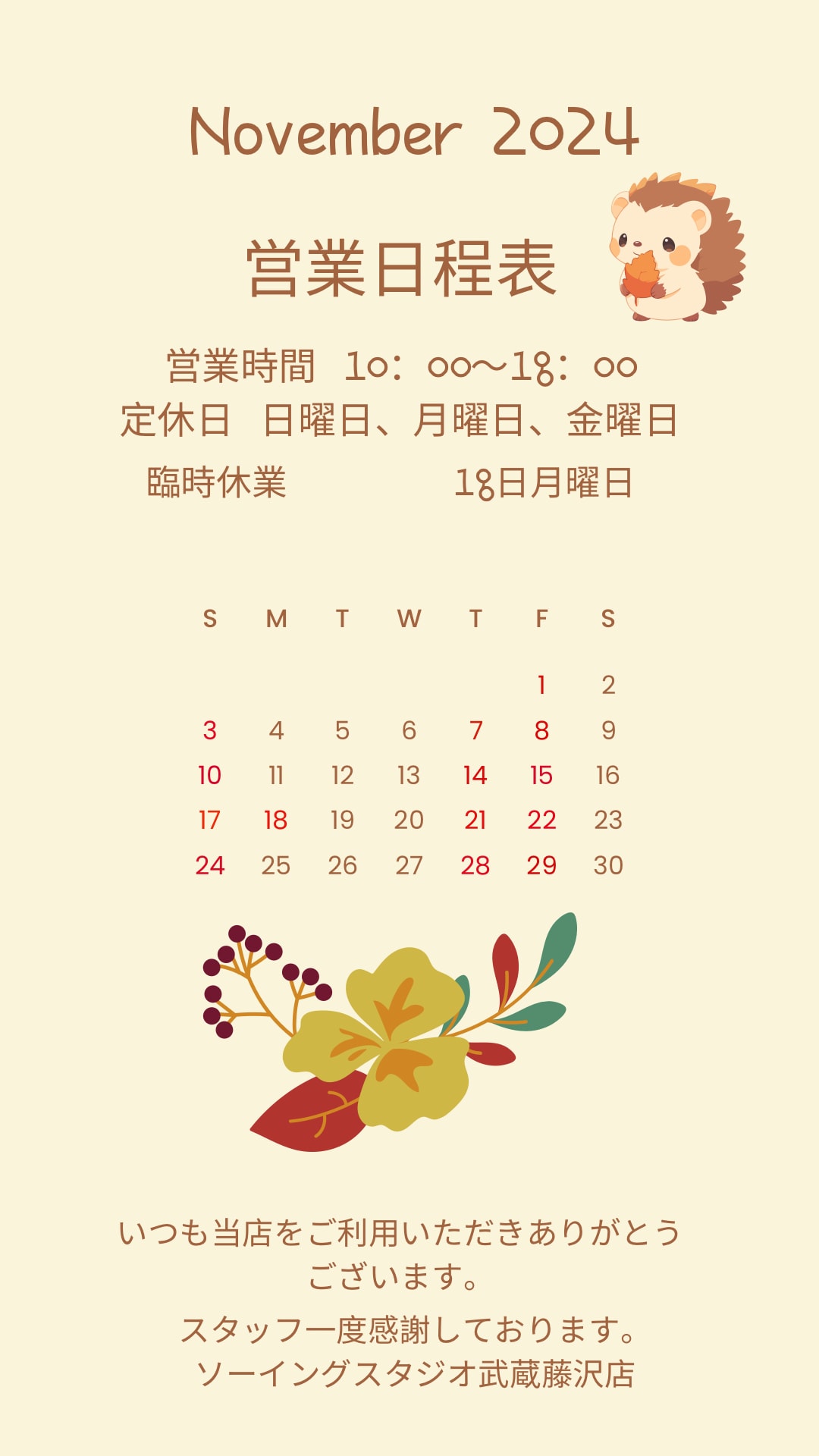 11月に入り🍂秋らしくなりましたね!
