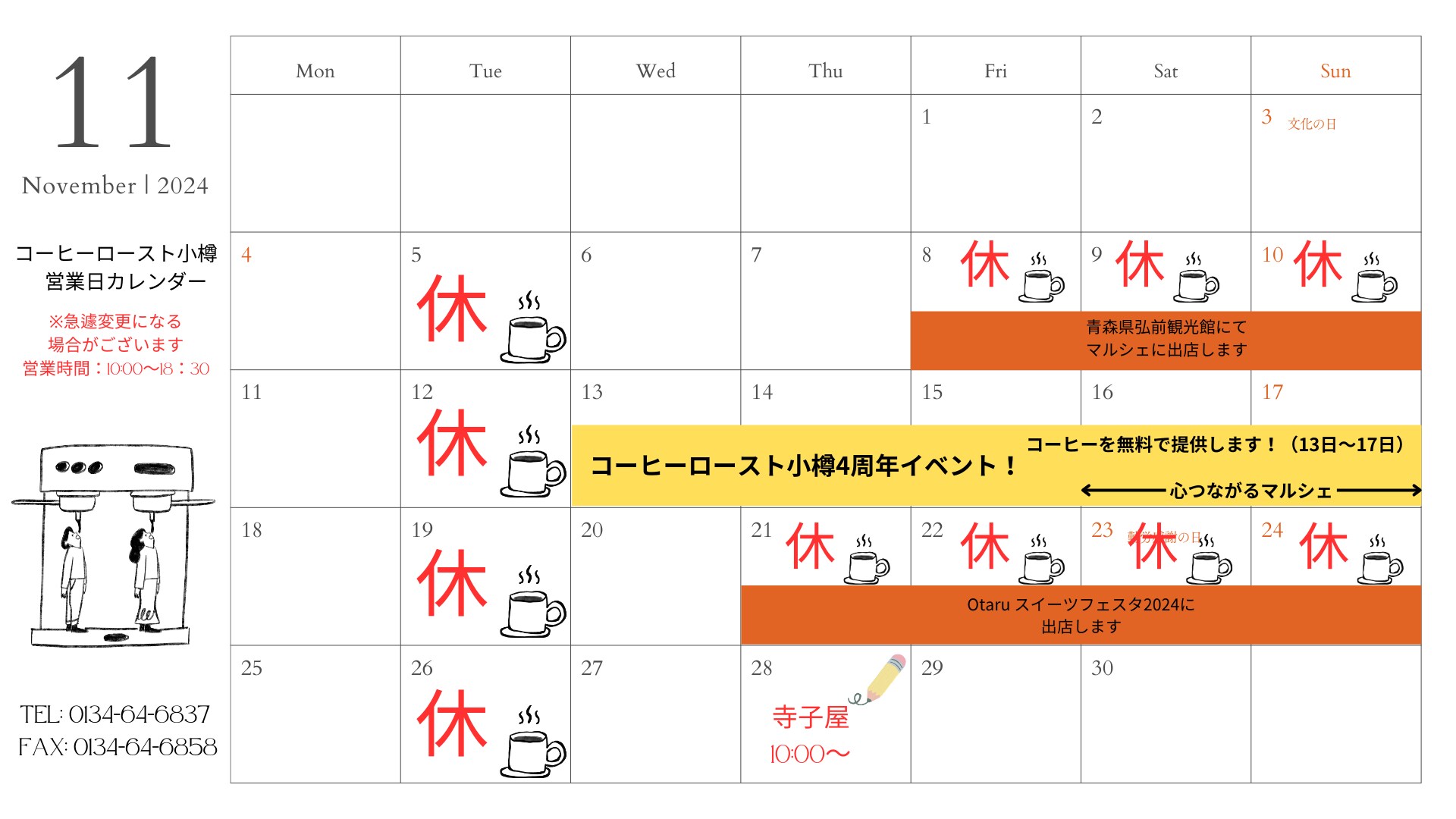 コーヒーロースト小樽 ☆11月のお知らせ☆