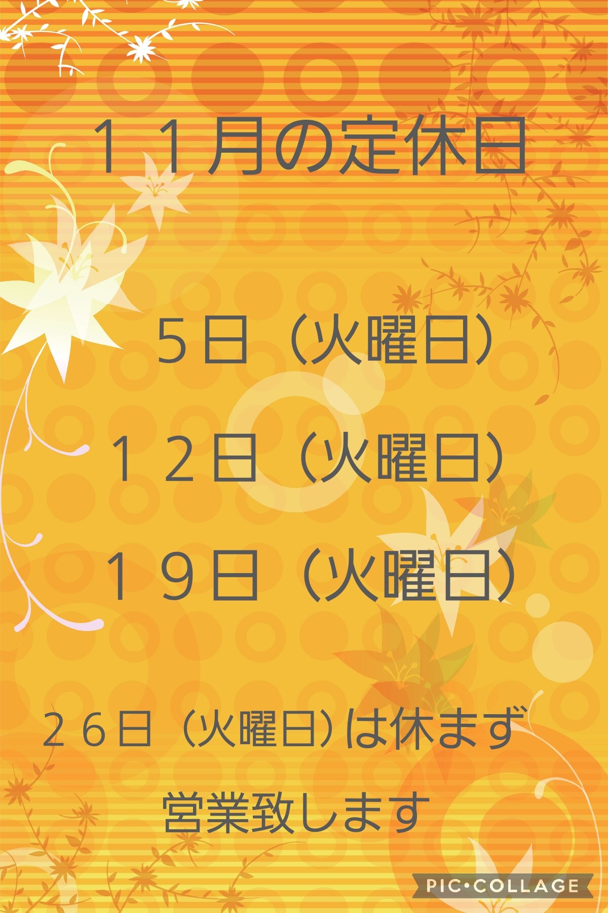 ♡11月の定休日のお知らせになります。ご来店の際はお確かめの上お越しくださいませ🙇