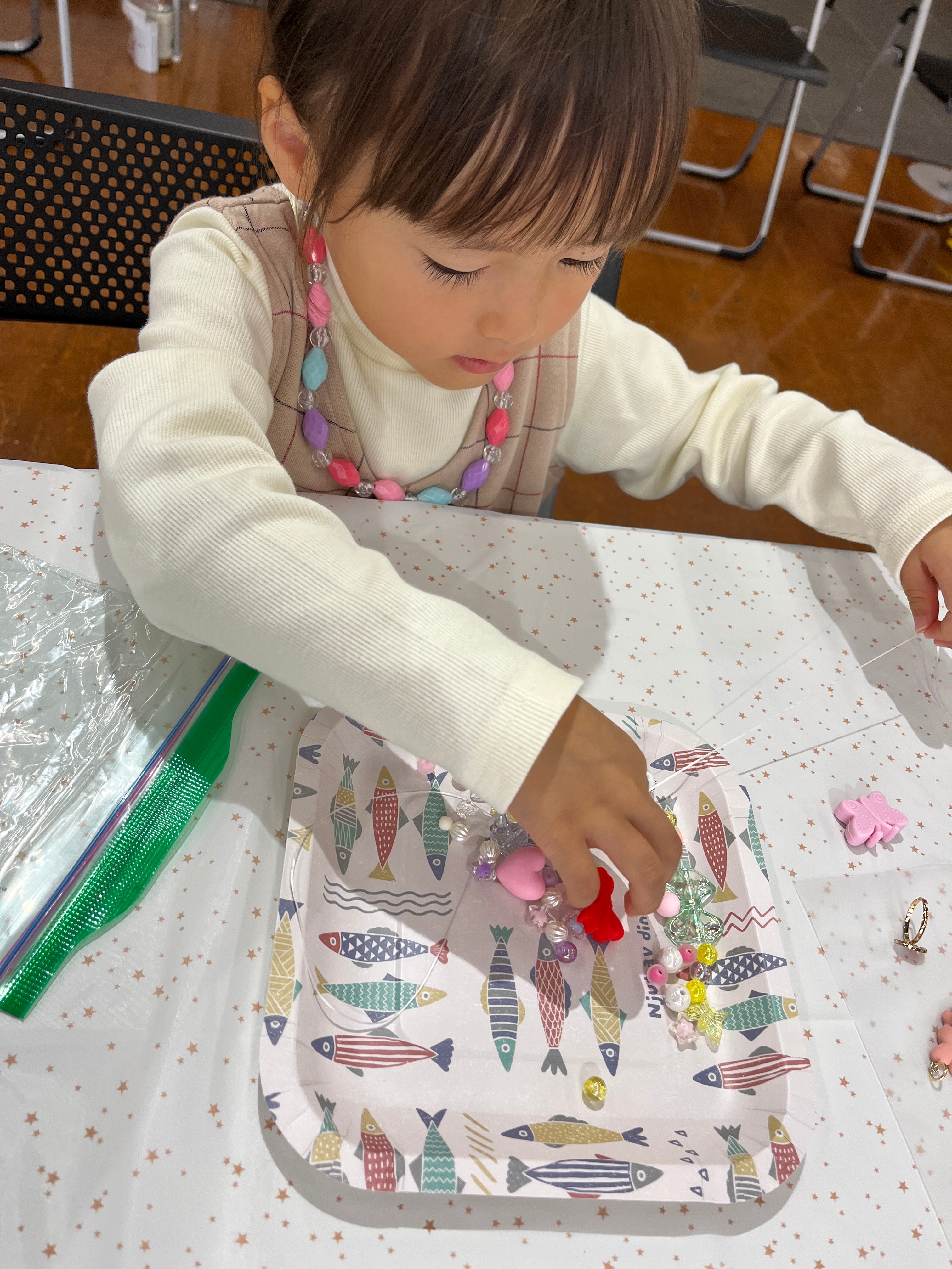 アクセサリーが完成した時のこどもたちの笑顔は、
