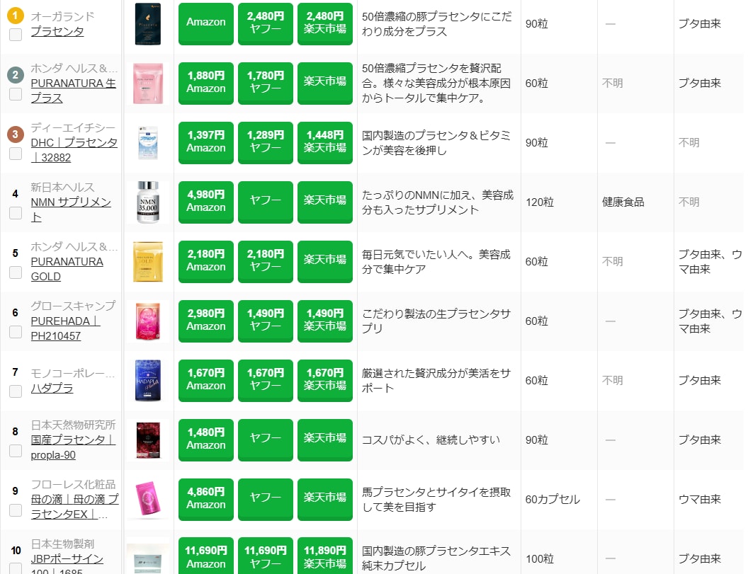 ちなみに参考までにプラセンタサプリの