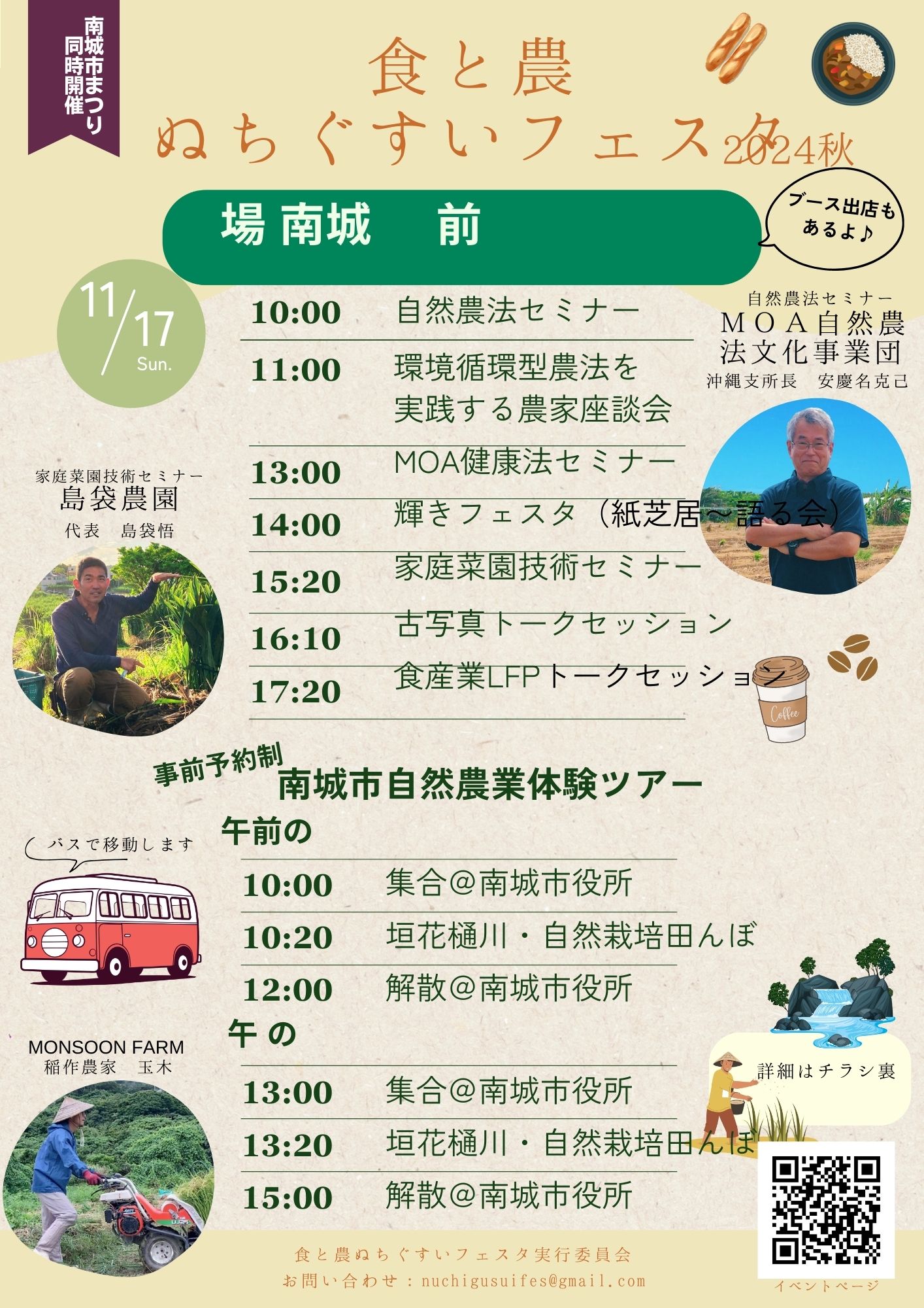 【本日】食と農 ぬちぐすいフェスタ2024秋に出店します!【南城市】