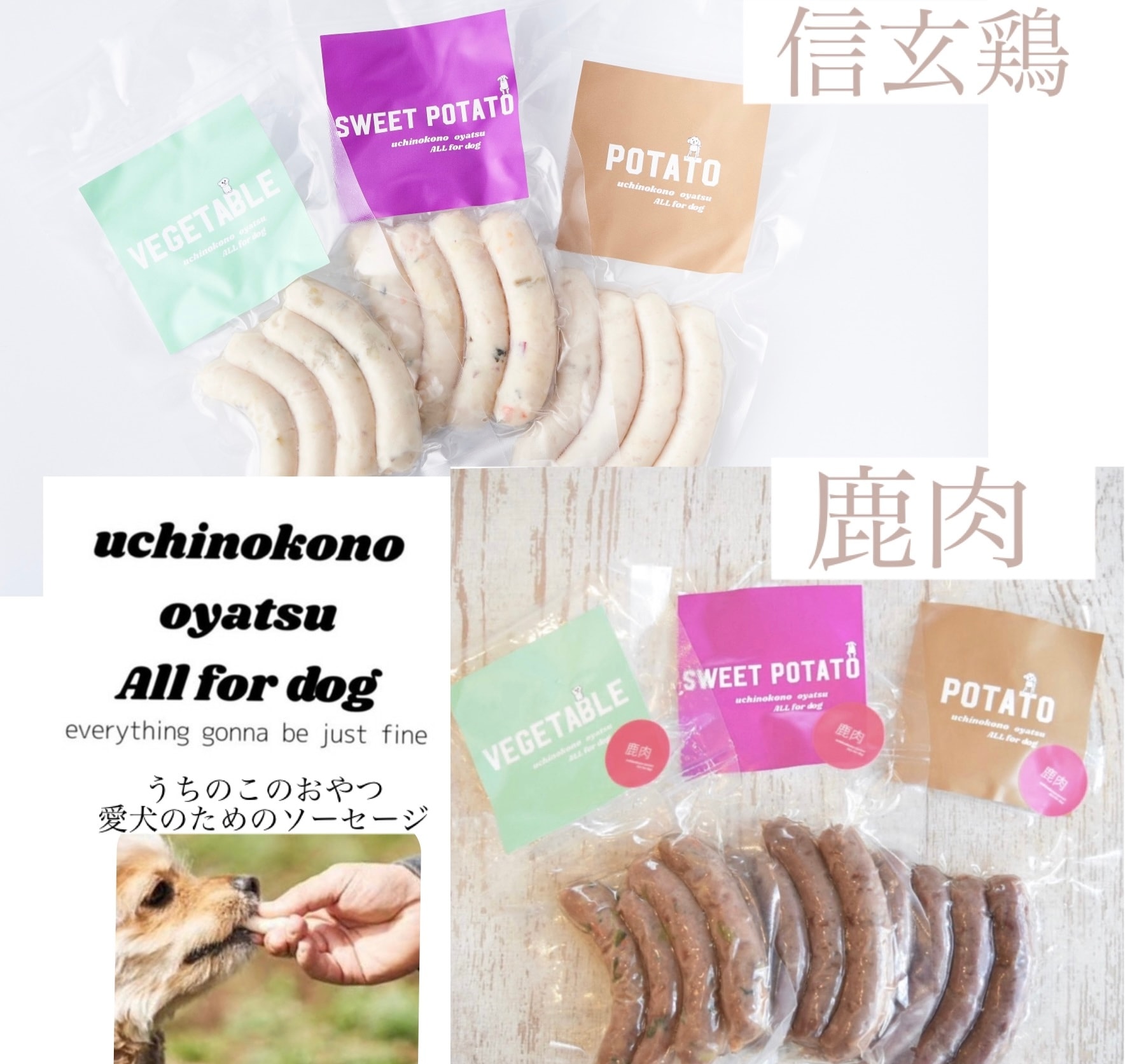 うちのこのおやつは無添加、無塩、保存料不使用、国産にこだわって作った、愛犬のためのソーセージです。
