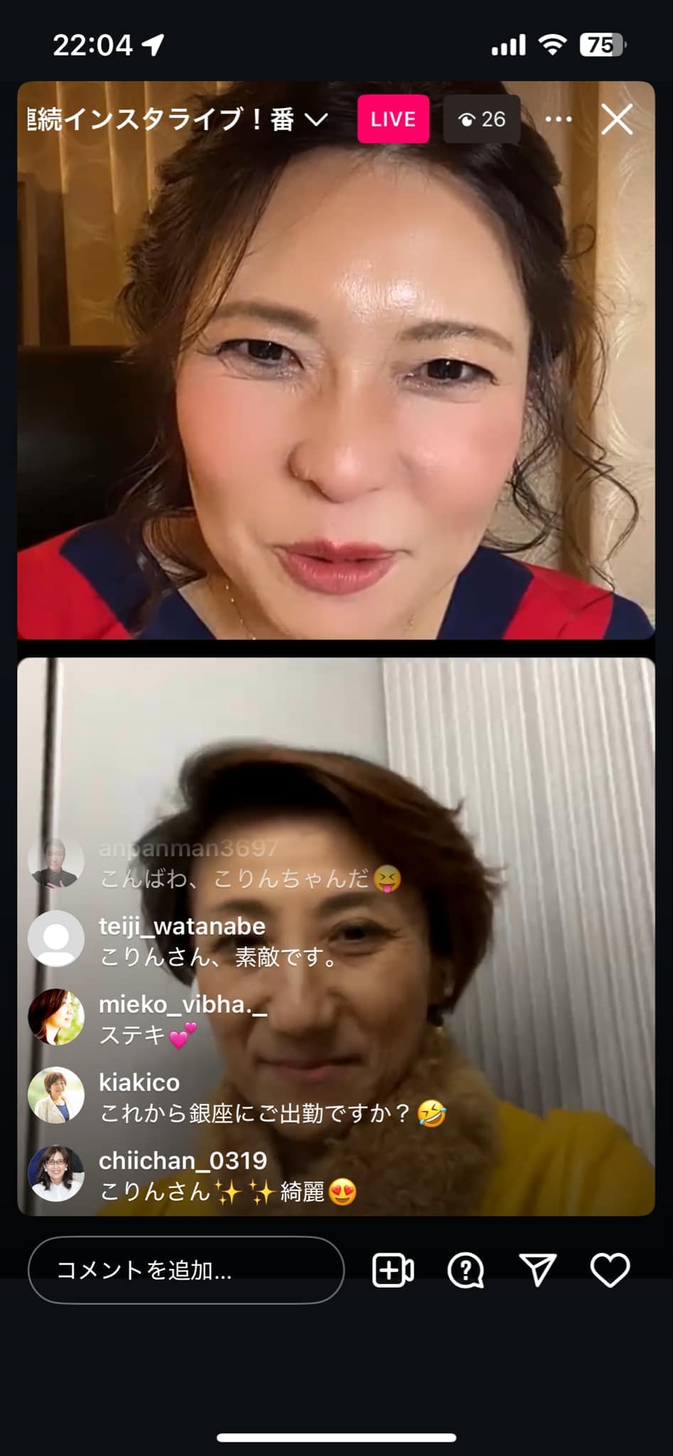 山中恵美子さんのインスタライブ!