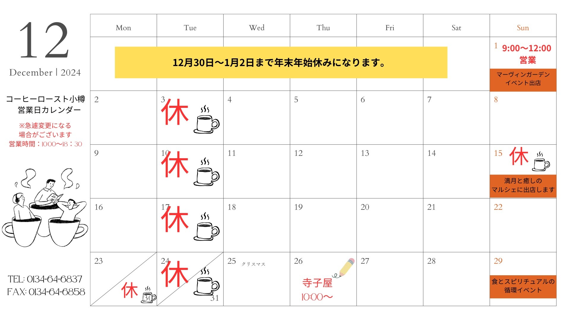 コーヒーロースト小樽 ☆12月のお知らせ☆