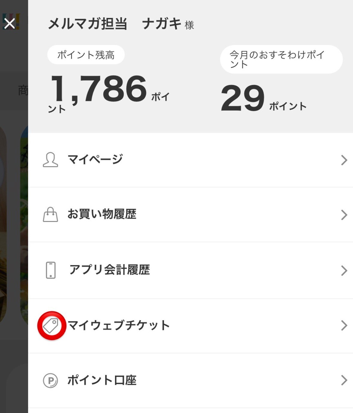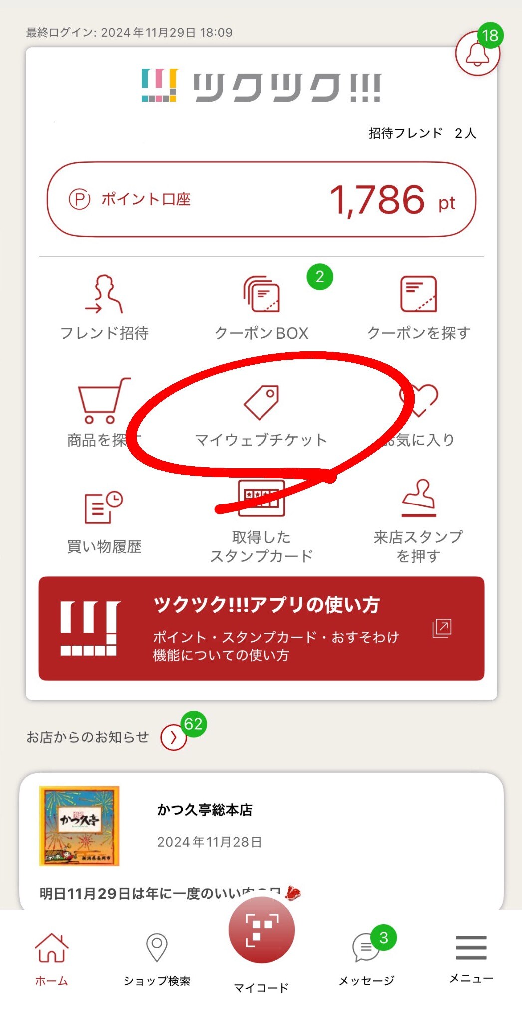↓ツクツク!!!アプリの【マイウェブチケット】を選択