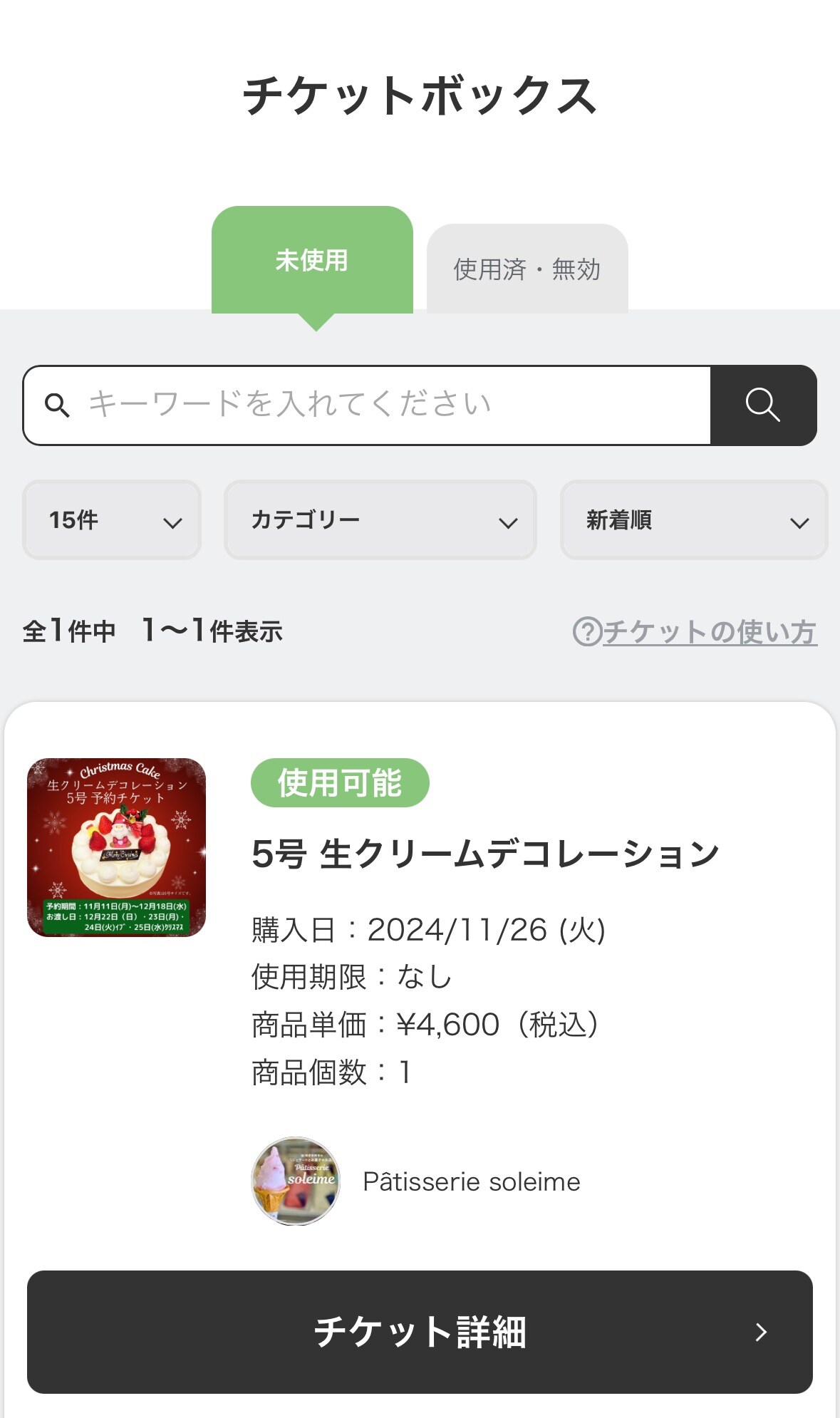 そんな時に、私の行きつけの【Pâtisserie soleime】さんがクリスマスケーキの予約をツクツク!!!のウェブチケットで行うとの情報を入手🗒️