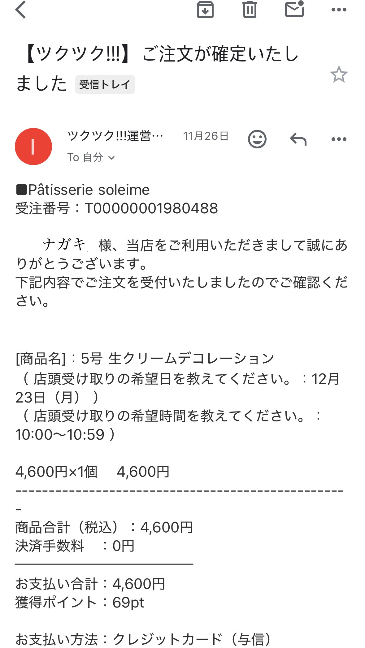 注文確定後にツクツク!!!運営事務局より、確定内容のメールが届きます📨