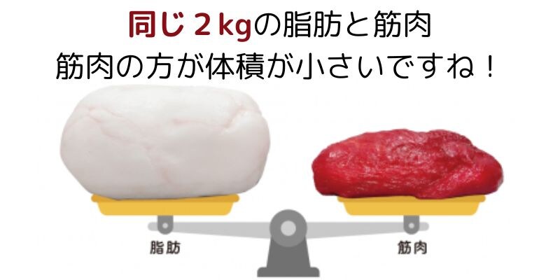 筋肉は脂肪よりも重く、同じ体積の筋肉と脂肪を比較すると、筋肉の方が約20%重くなっているからです。
