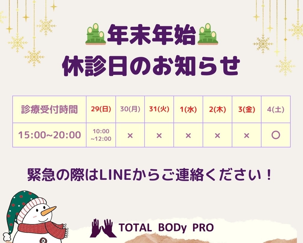 🎍年末年始🎍休診日のお知らせ! 愛媛県松山市 TOTAL BODy PRO