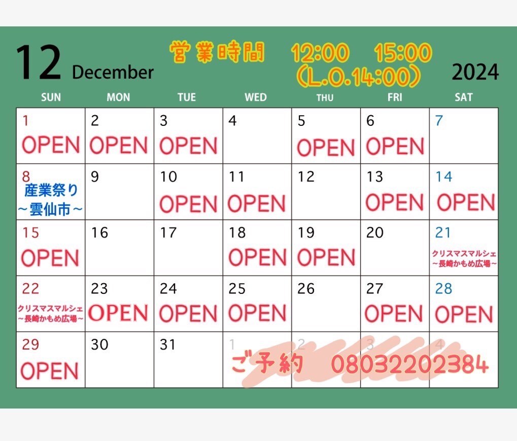12月の営業日を今日の今日まで送れておりませんでした😨