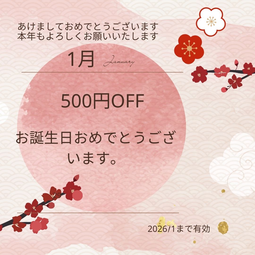お誕生月より1年間有効です。(ツクツクとの併用はできません)