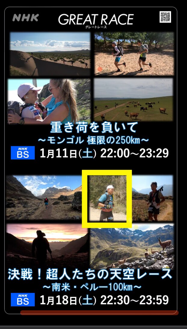 丹波市でトレイルランニングのプロアスリートとして活躍されている中谷亮太さんが出場したペルーで8月に行われたレースが1月18日(土)にNHK-BS「グレートレース」に取り上げられます。