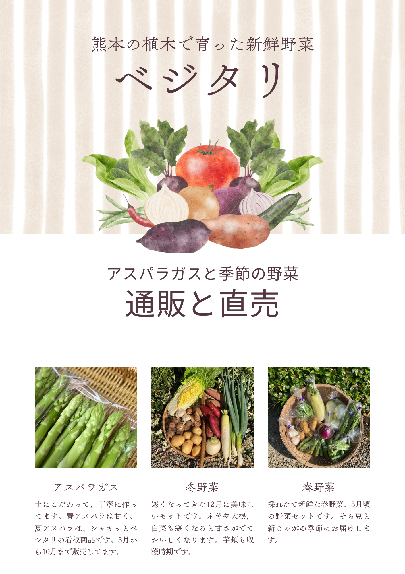 皆様、こんにちは。熊本のアスパラと季節野菜のベジタリです。寒くなりましたねー。皆様,風邪などひかれていませんか?