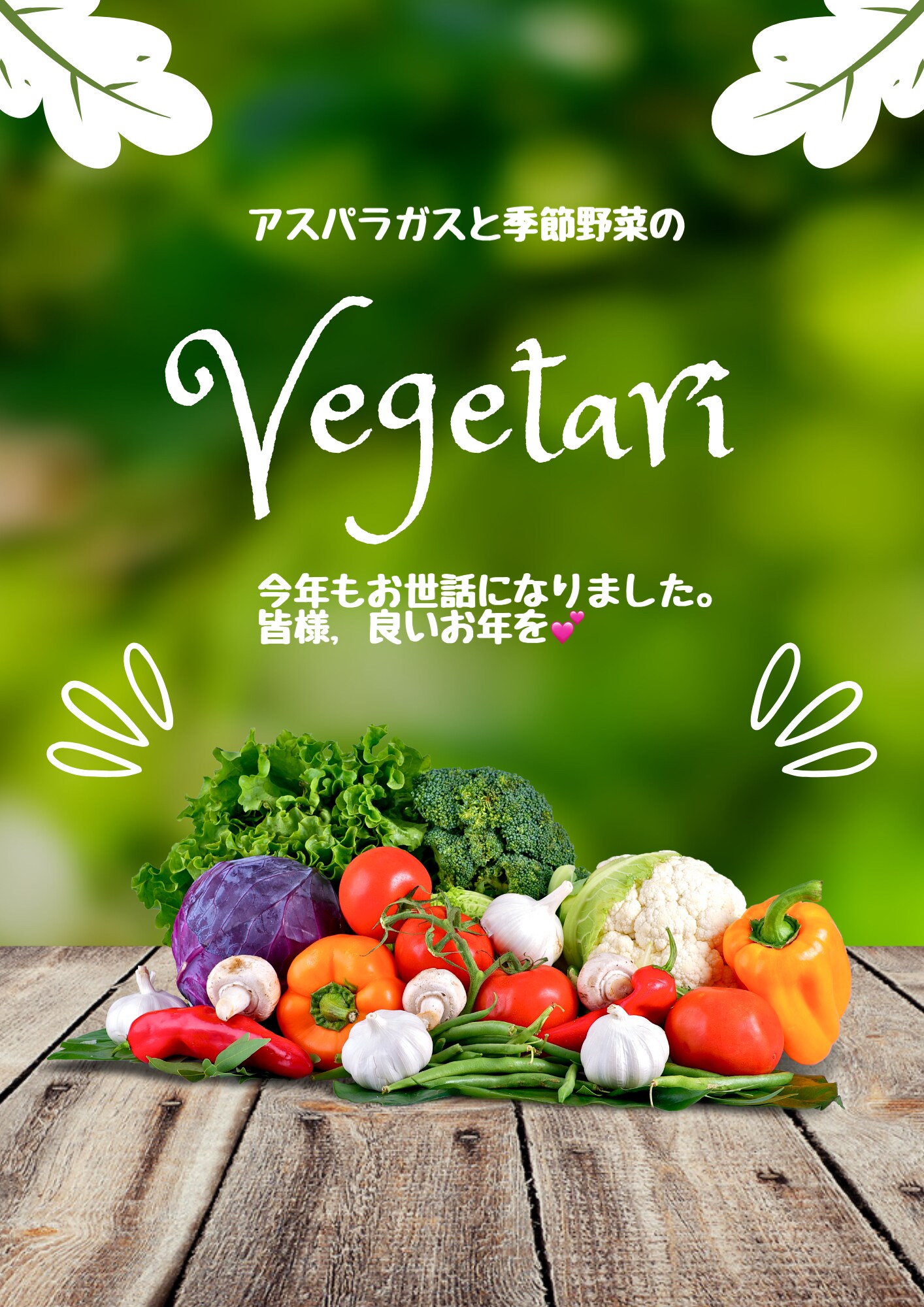 今年もベジタリのアスパラガスとお野菜を通販、注文販売、マルシェ、道の駅(クラッシーノ マルシェ、すいかの里)で買って頂きありがとうございました。今年も残すところ6日です。皆様,良いお年をお迎え下さい。来年もまた、よろしくお願いします。