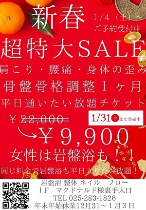 2024年の御礼と⭐️新春超特大SALE⭐️のお知らせ‼️岩盤浴&整体 フロー