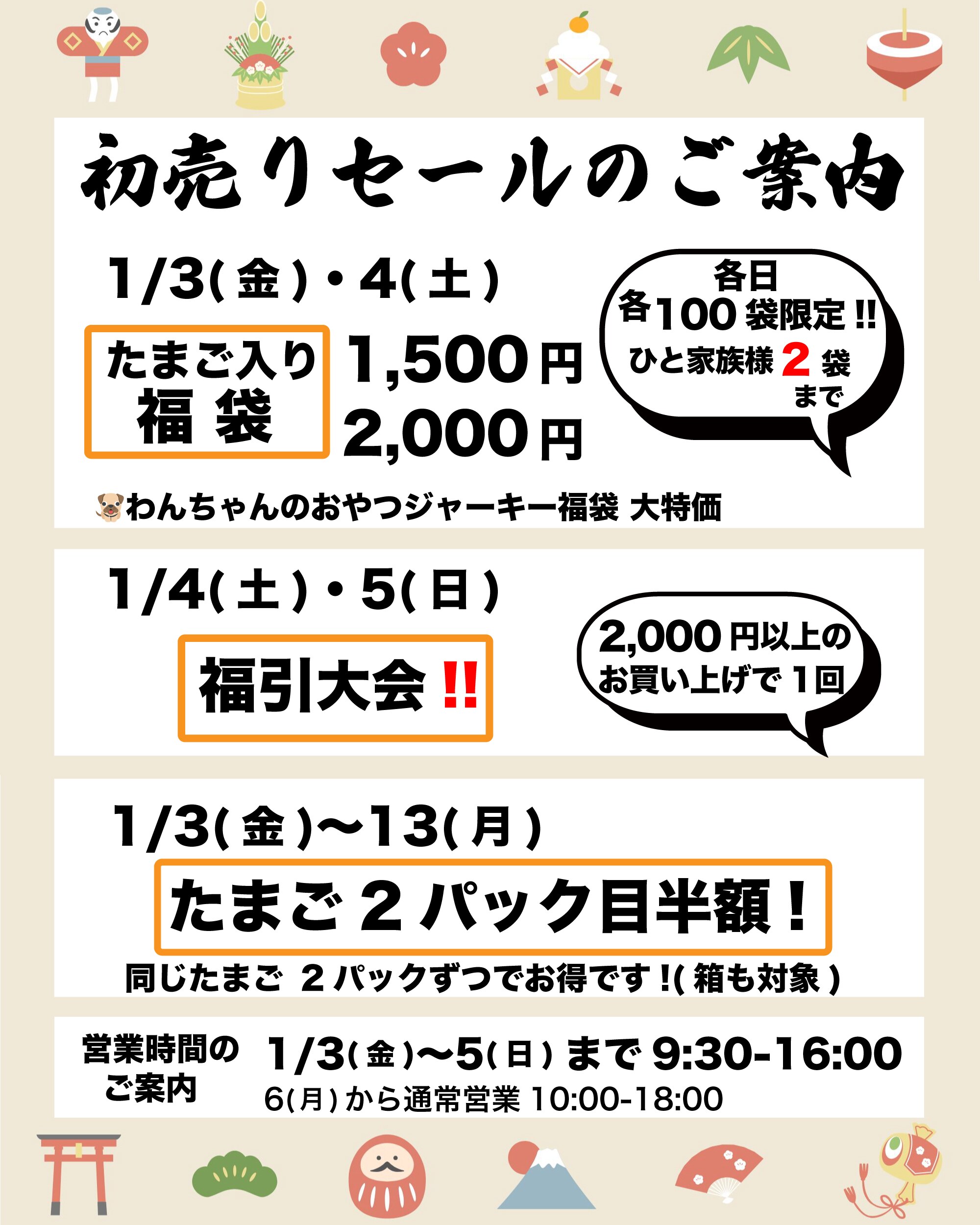 ちゃたまや【新春】初売り・お年玉セールのご案内