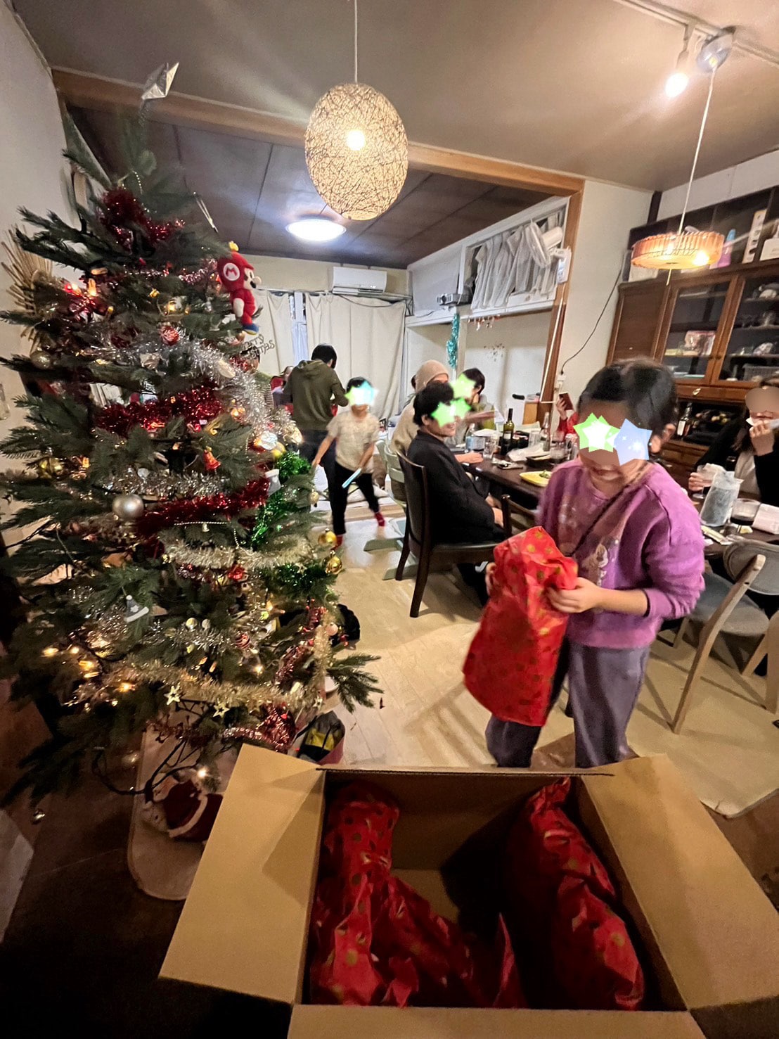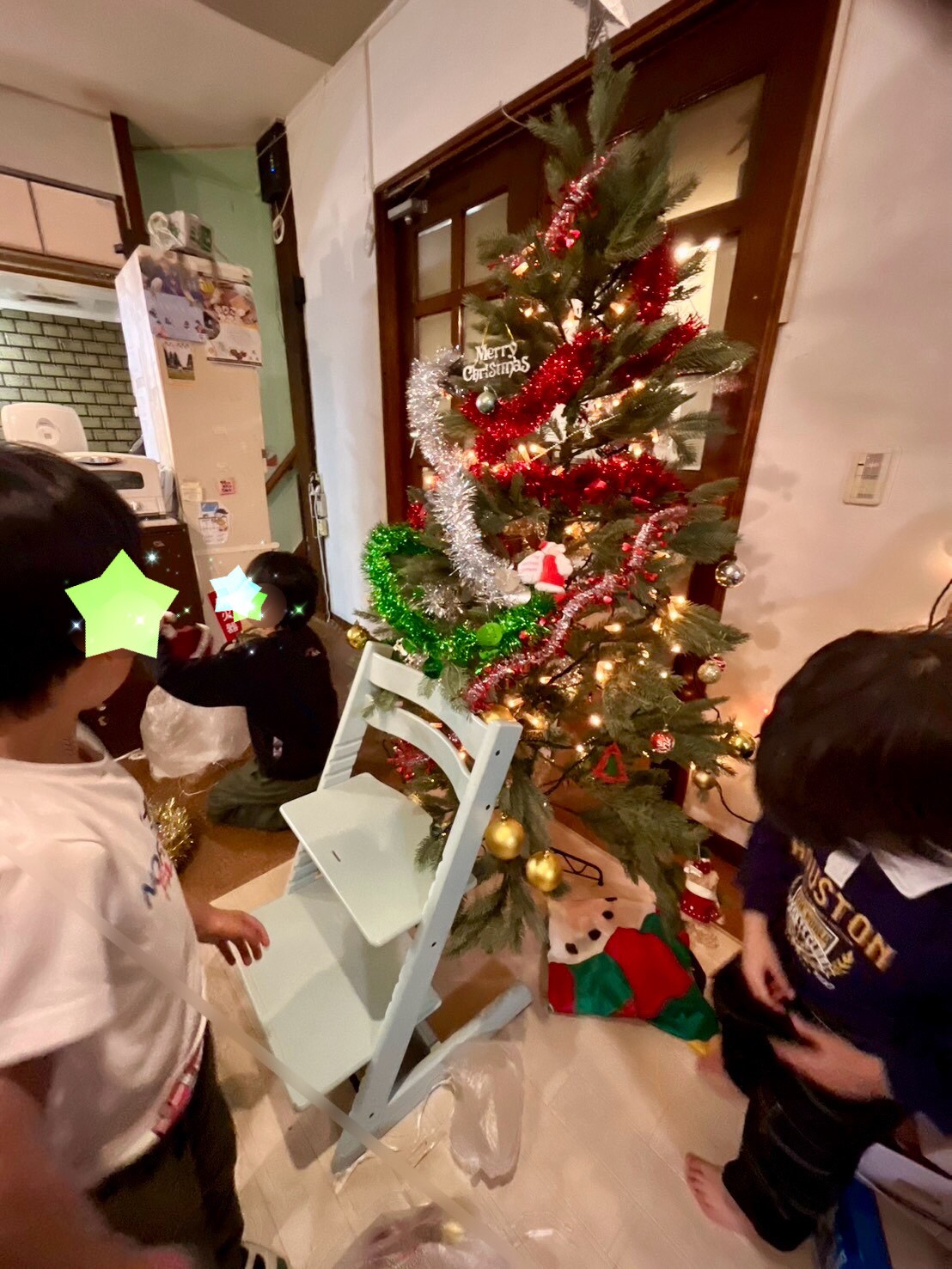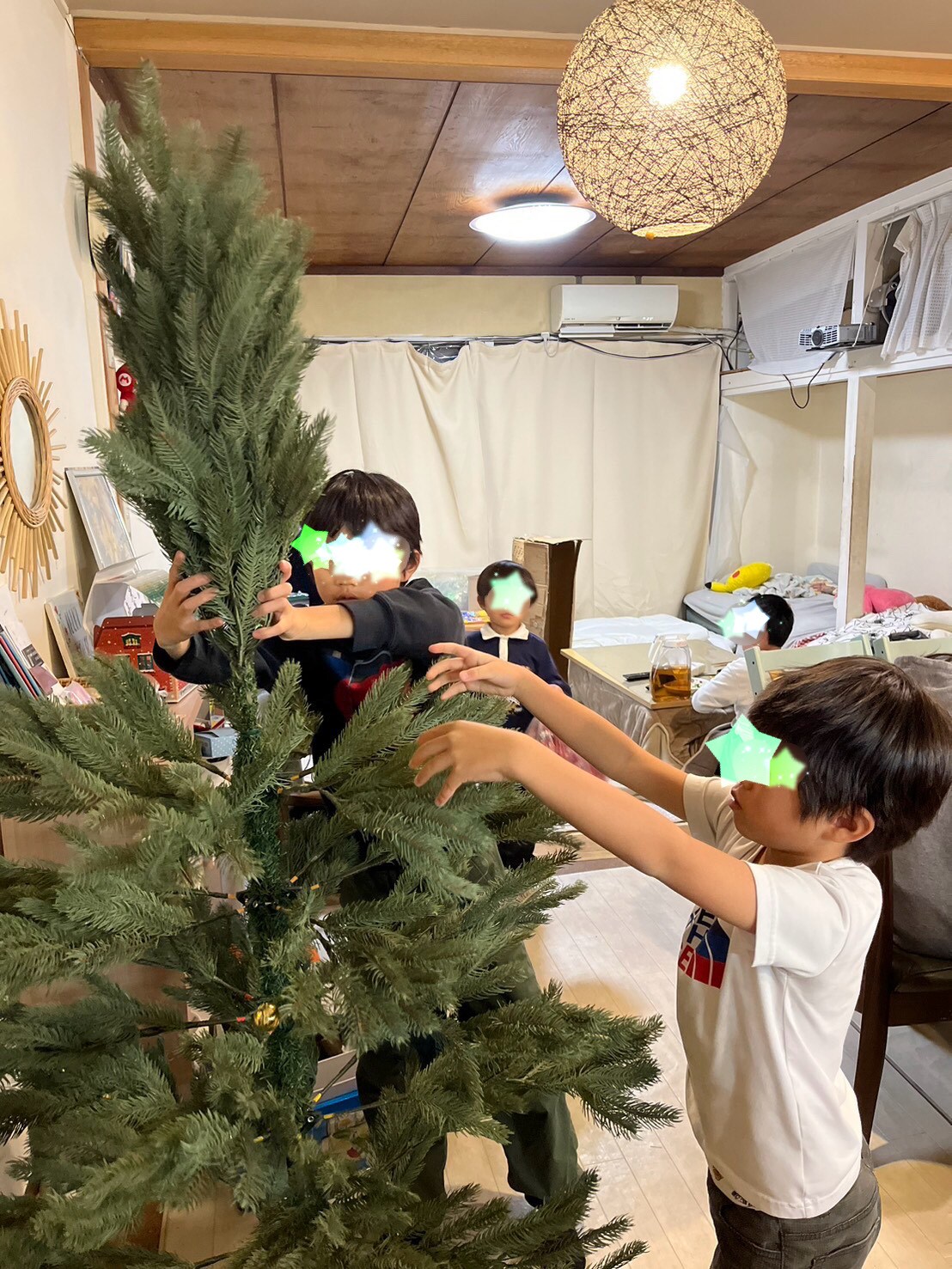 みんなでワイワイ、思い思いにクリスマスツリーに飾り付け。