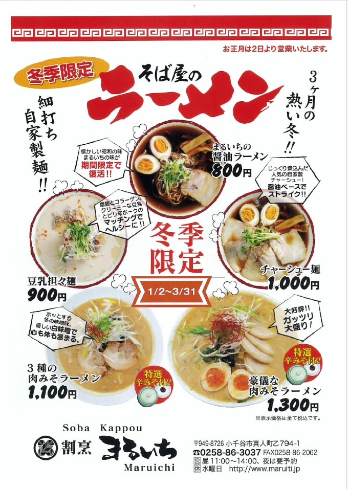 まるいち名物冬季限定そば屋のラーメンも毎年進化し、昨年はこだわりの自家製麺を商品化させていただきました。