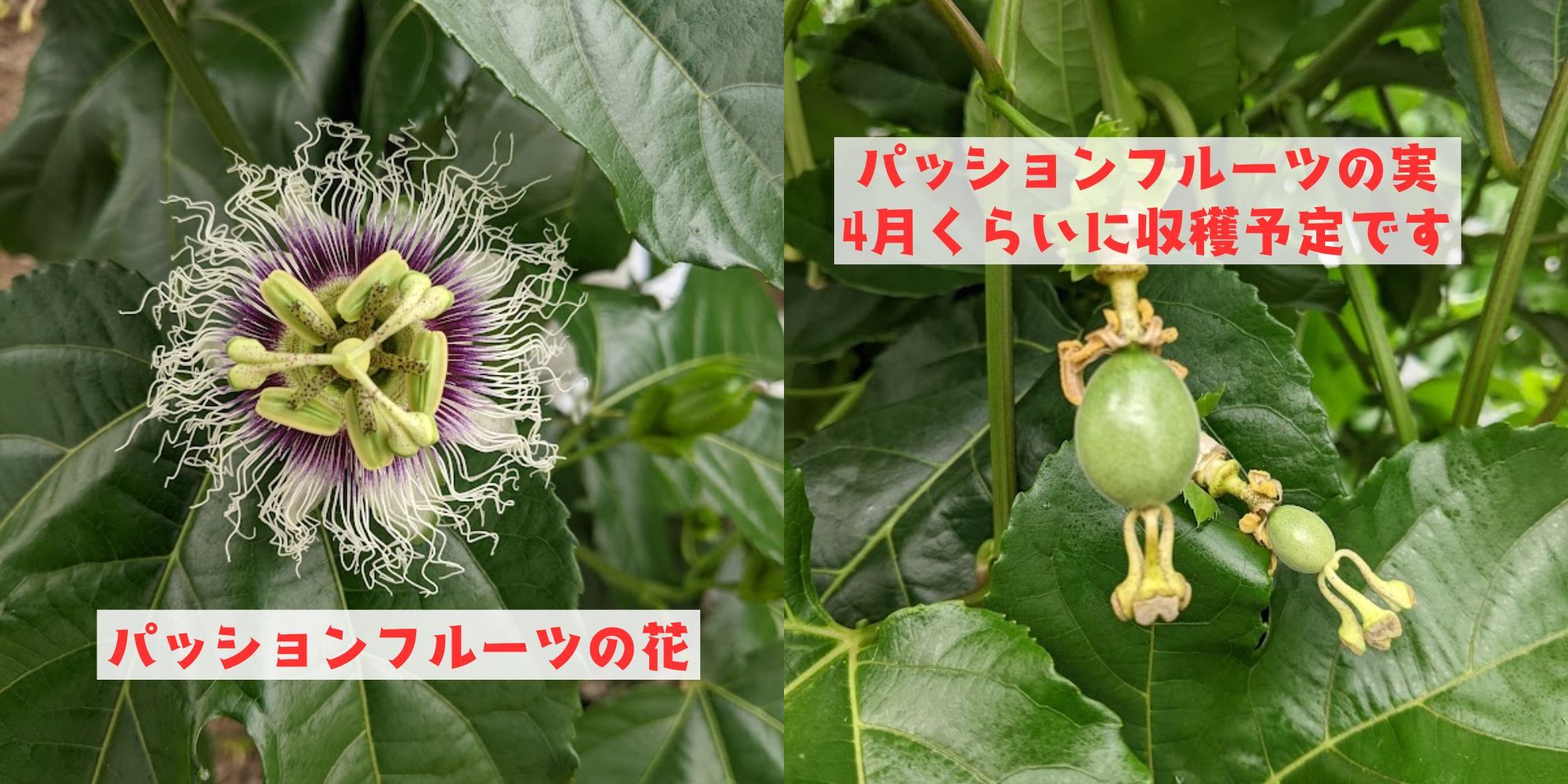 去年の8月下旬に新しい苗の植え付けを行い順調に成長しておりましたが、9月から雨と暑さ、竜巻の被害で雨を防ぐビニールとパイプが飛んでいったり、その影響で雨を防げずパッションの木が立ち枯れしてしまうなど色々ありましたが、たくさんの方々のご支援の下、花が咲き実をつけてきております。ありがとうございます☺