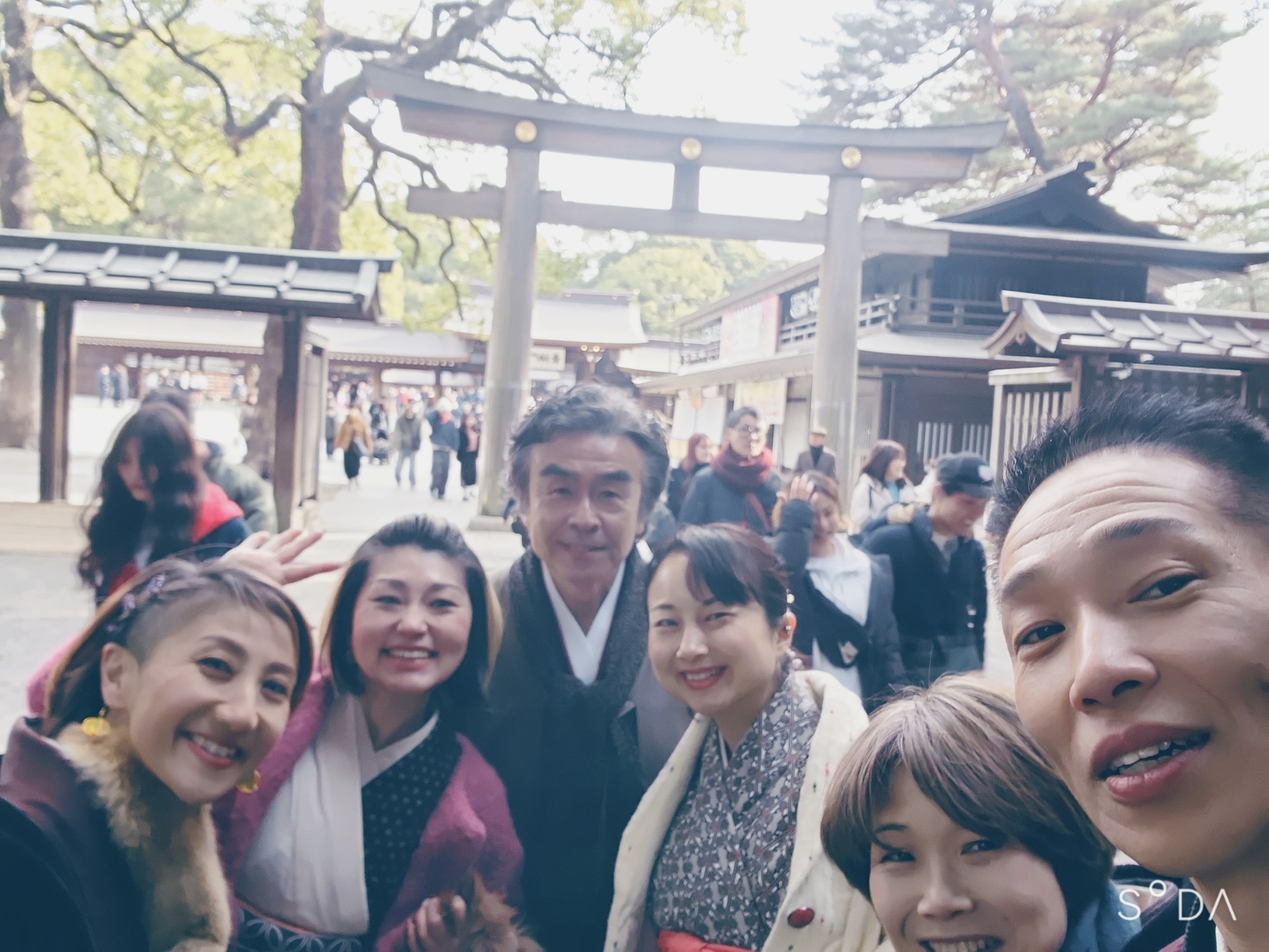 表参道を20人近くの仲間で着物で練り歩き