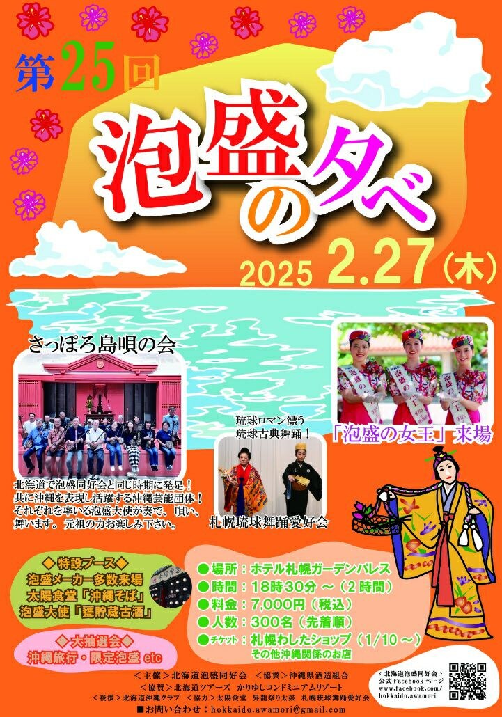 チケットは1/10より、札幌わしたショップ、おきなわや琴似店を始め市内沖縄関係の店にて発売開始!先着300名の会ですのでお早めにご購入下さい。お席指定致しますので2名以上、団体ご購入の方はご購入の際に購入店又は事務局へ会の3週間前までにお申し出下さい 。 (hokkido.awamori@gmail.com )