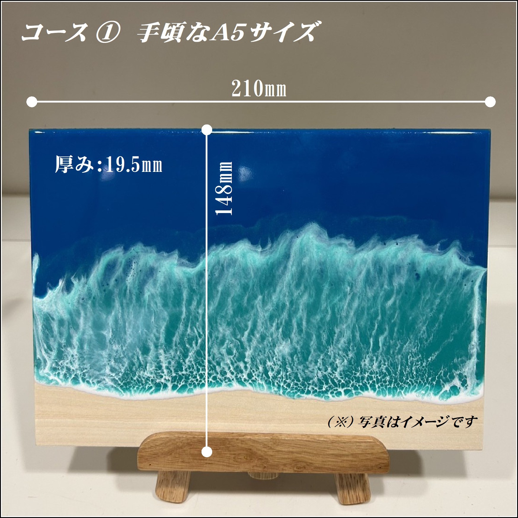絵具で海を描き、樹脂を流し、ヒートガンで波を一気に描きます🌊