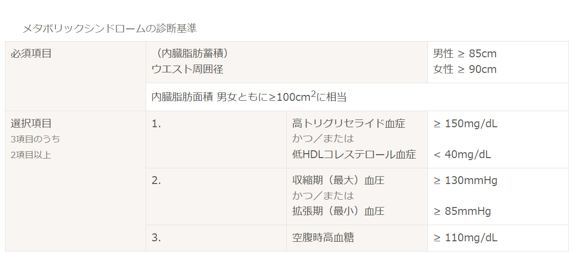 日本人の生活習慣病のメタボリックシンドロームの診断基準は