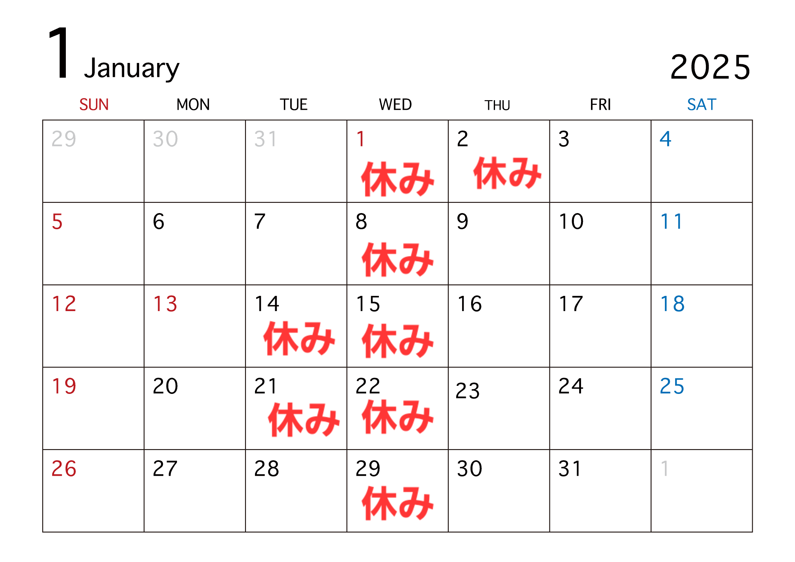 1月・お休みのお知らせ