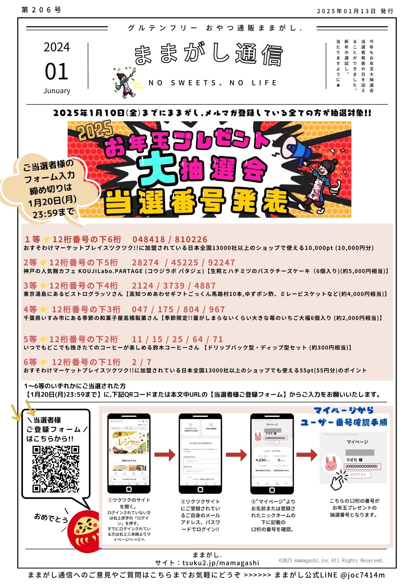 2025年お年玉大抽選会 当選番号発表!!!!!!!
