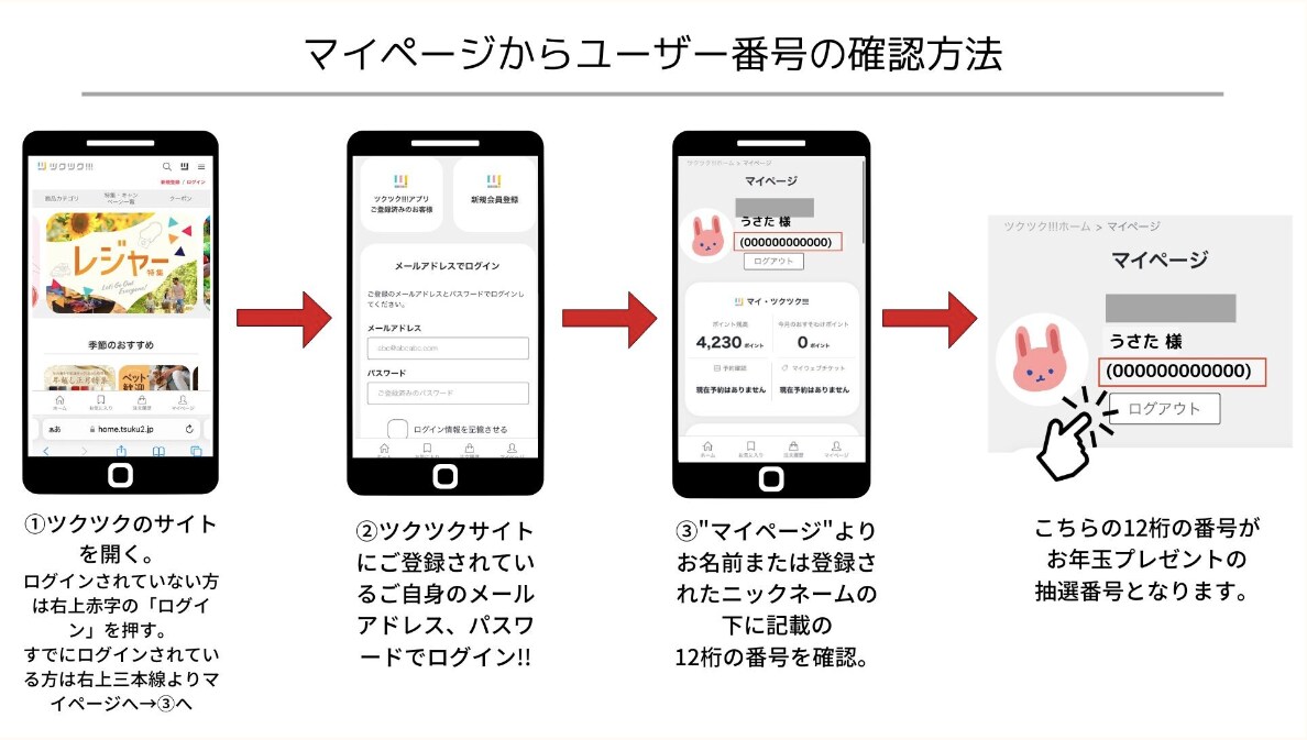 ご自身のマイページよりご確認いただける「ユーザー番号」が抽選番号となっております!