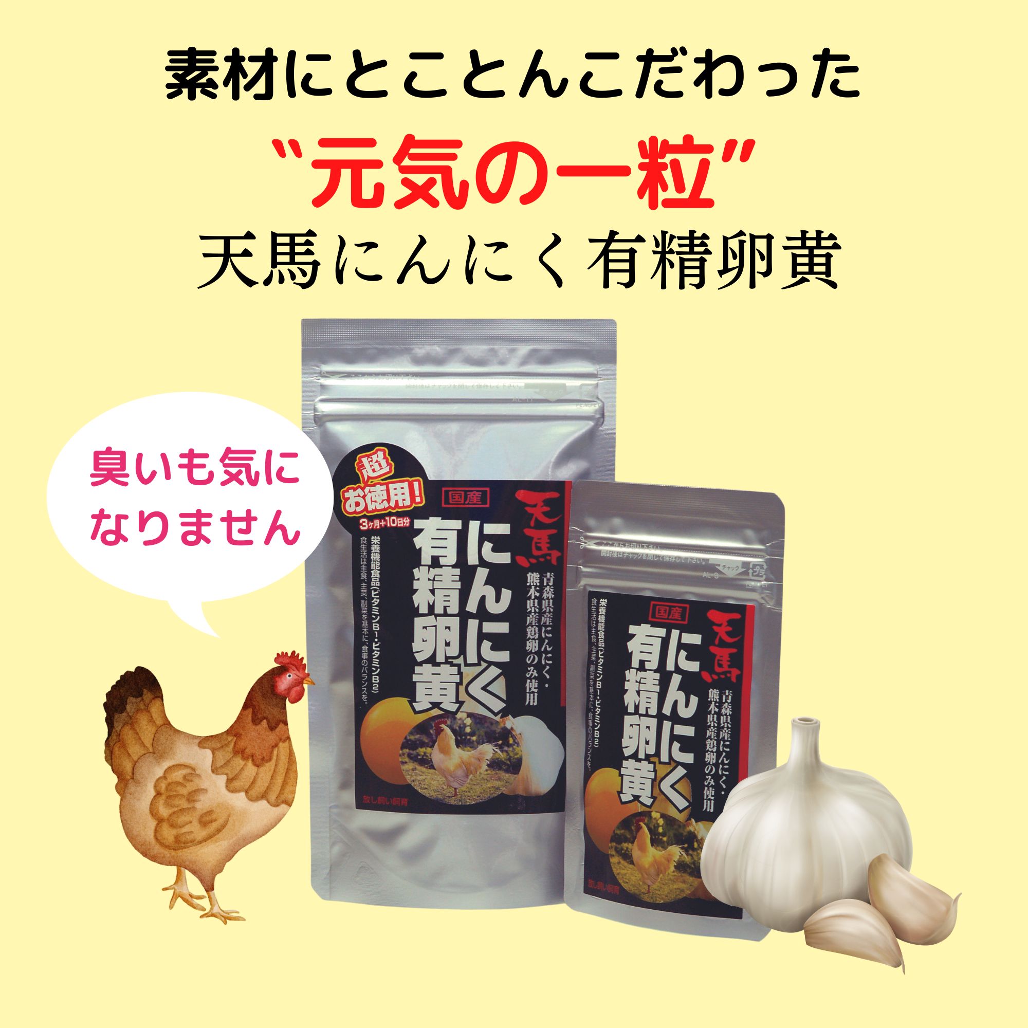 【機能性表示食品】元気の源 1日2粒元気チャージ! 天馬にんにく有精卵黄 62粒
