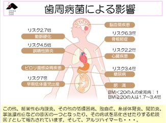 動脈硬化、誤嚥性肺炎、心疾患、糖尿病などのリスクが