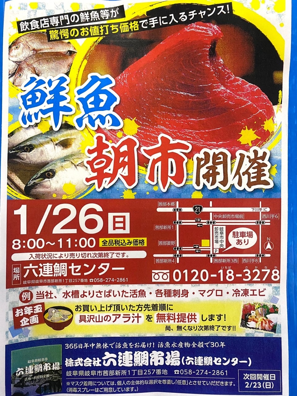 岐阜卸売り市場前の六連鯛市場さん