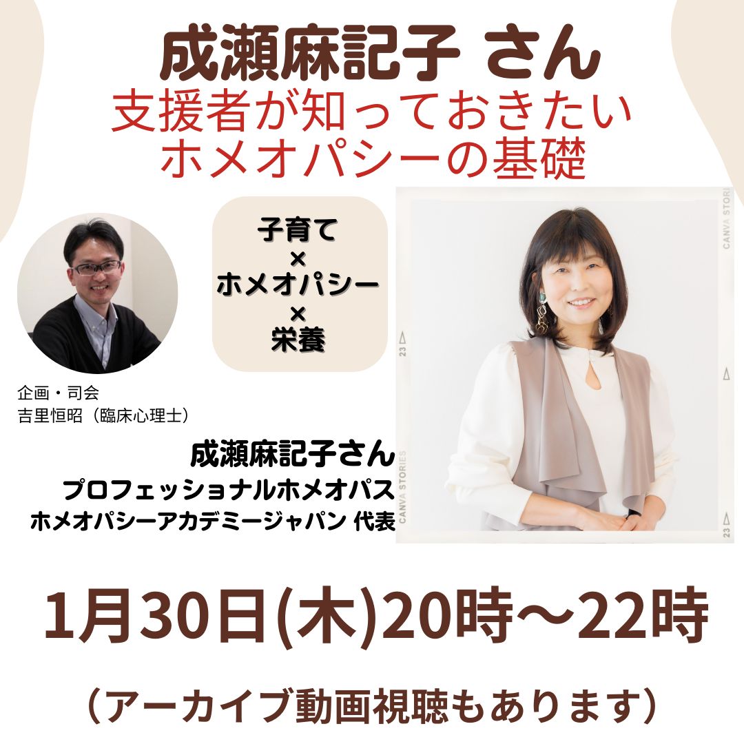 今回のセミナーでは、発達に凸凹のあるお子さんなどを支援されている方や当事者の方に向けてホメオパシーや栄養などに関するお話をさせていただきます。