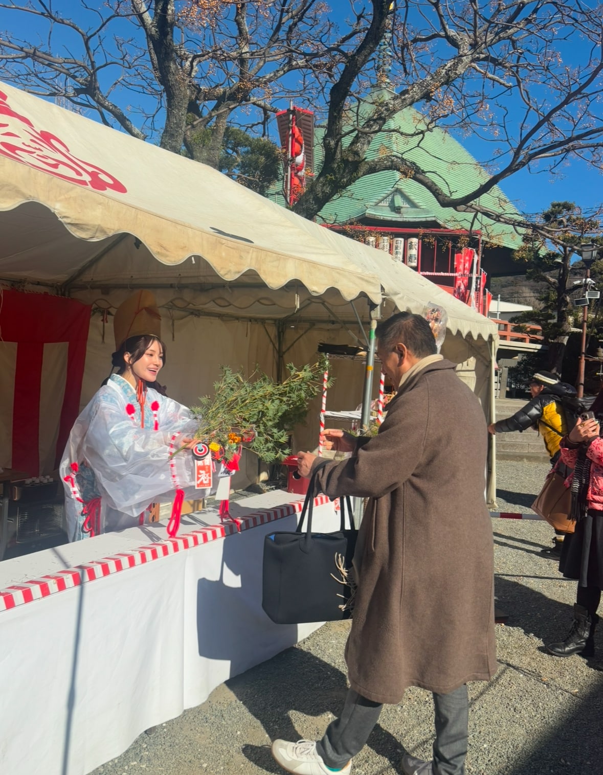 美しいえびす娘が商売繁盛、家内安全を祈り、福笹を授けてくれました。