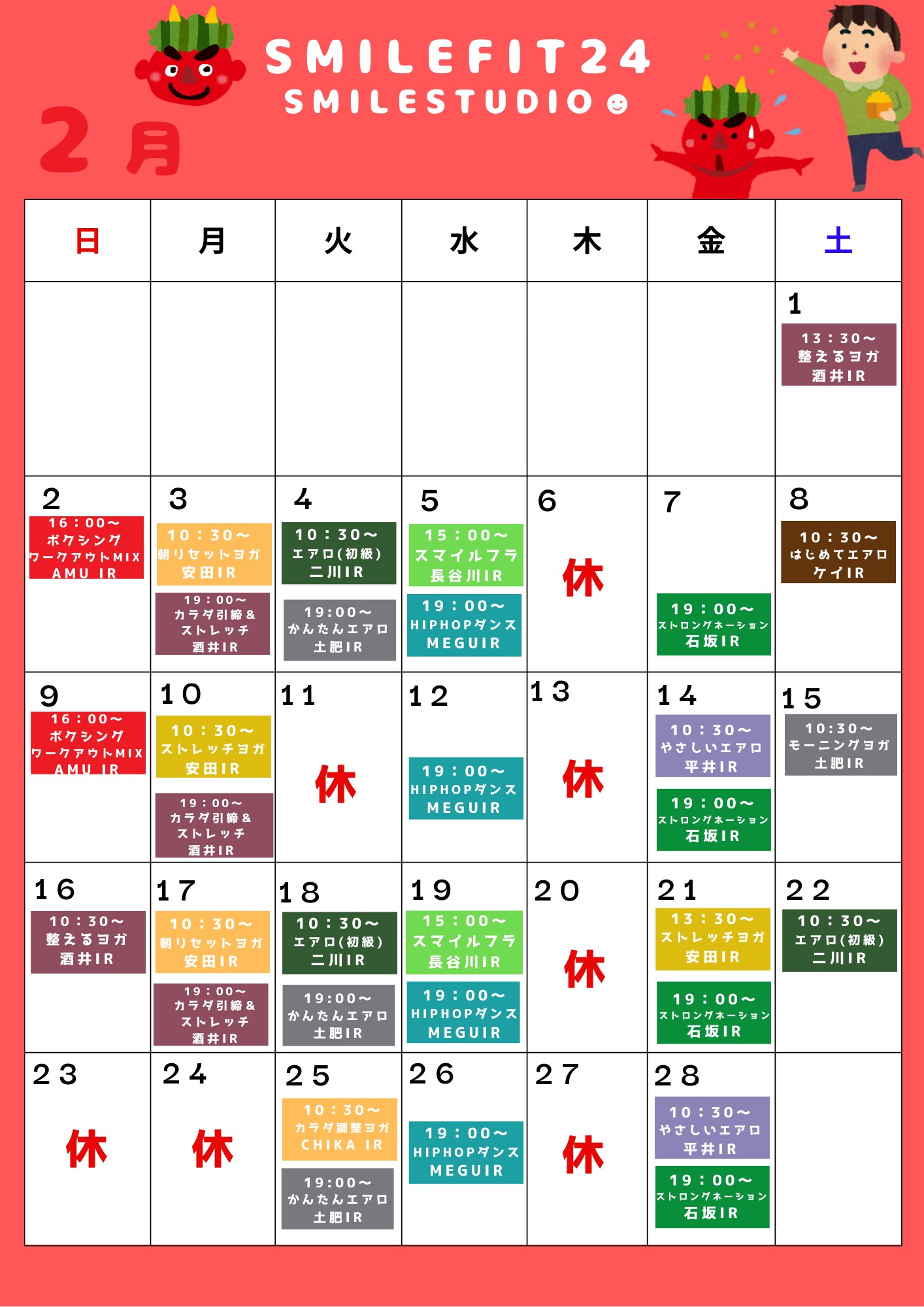 【Smilefit24メルマガ】鹿児島県産でこぽん 大将季/ 2月レッスンスケジュール公開(修正済)
