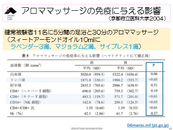 アロママッサージするとNK細胞の数増えて、