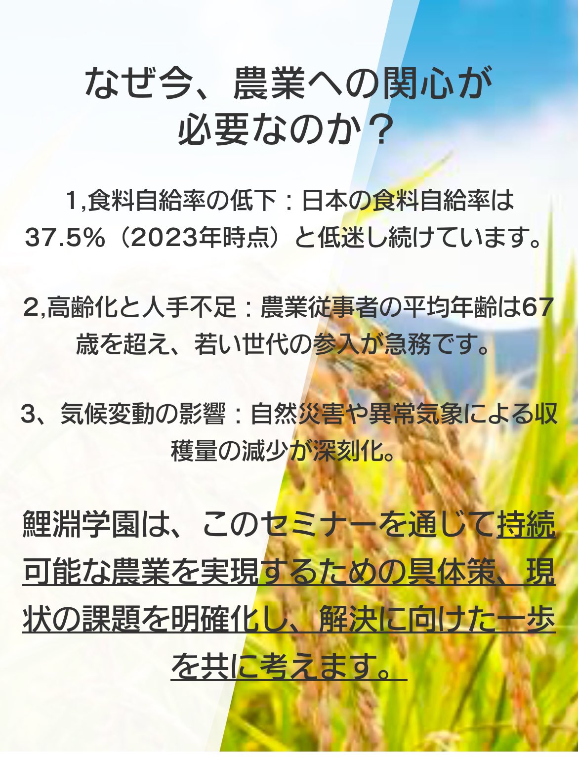 講師になり初めて日本の食料自給率問題、後継者不足、知識不足、現実を目の当たりにしたそうです。