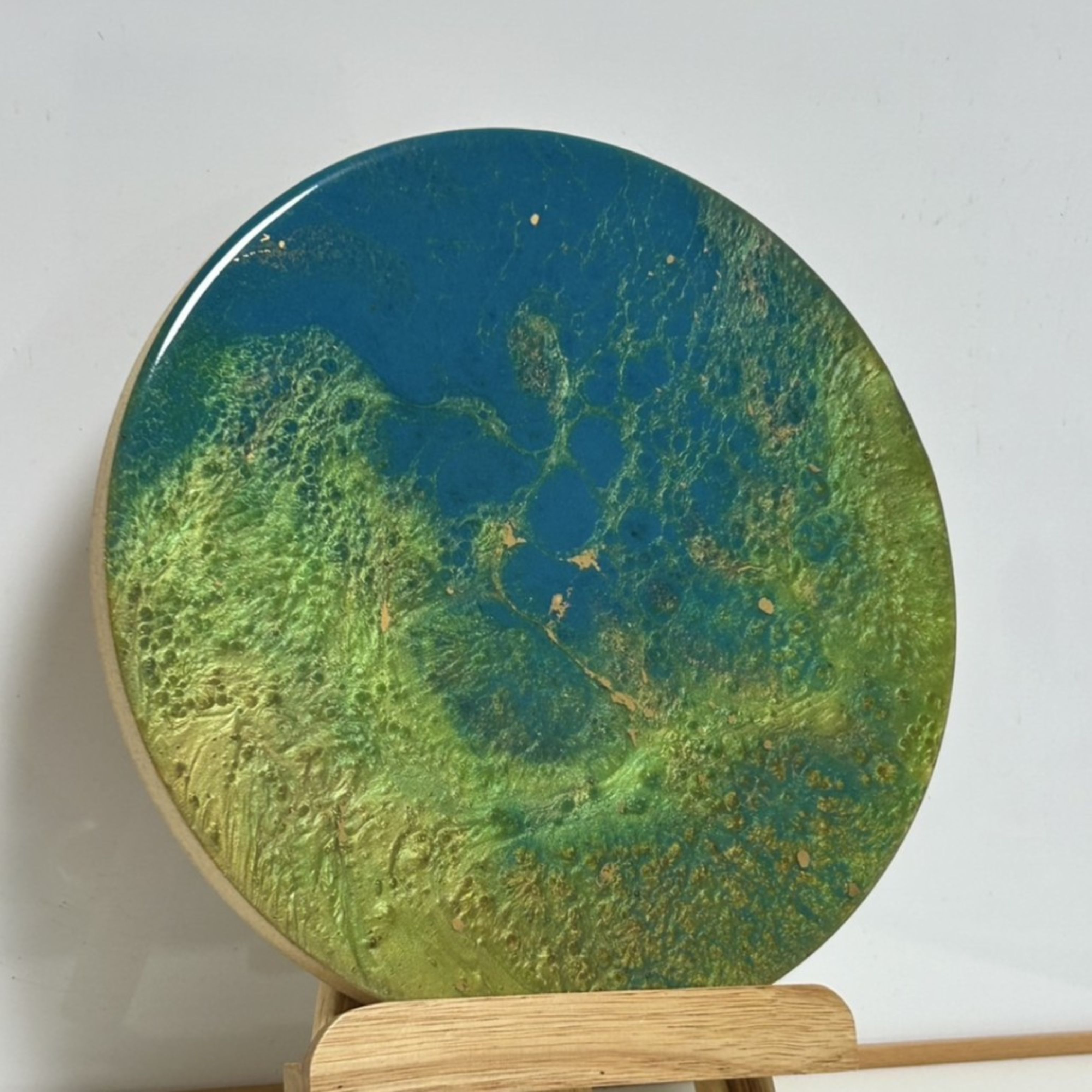 絵具で海を描き、樹脂を流し、ヒートガンで波を一気に描きます🌊