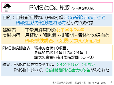 月経前症候群(PMS)とCa摂取の関係を見る実験が