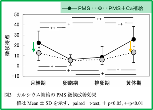 CaをPMS群に摂取してもらった後の不具合の結果は、