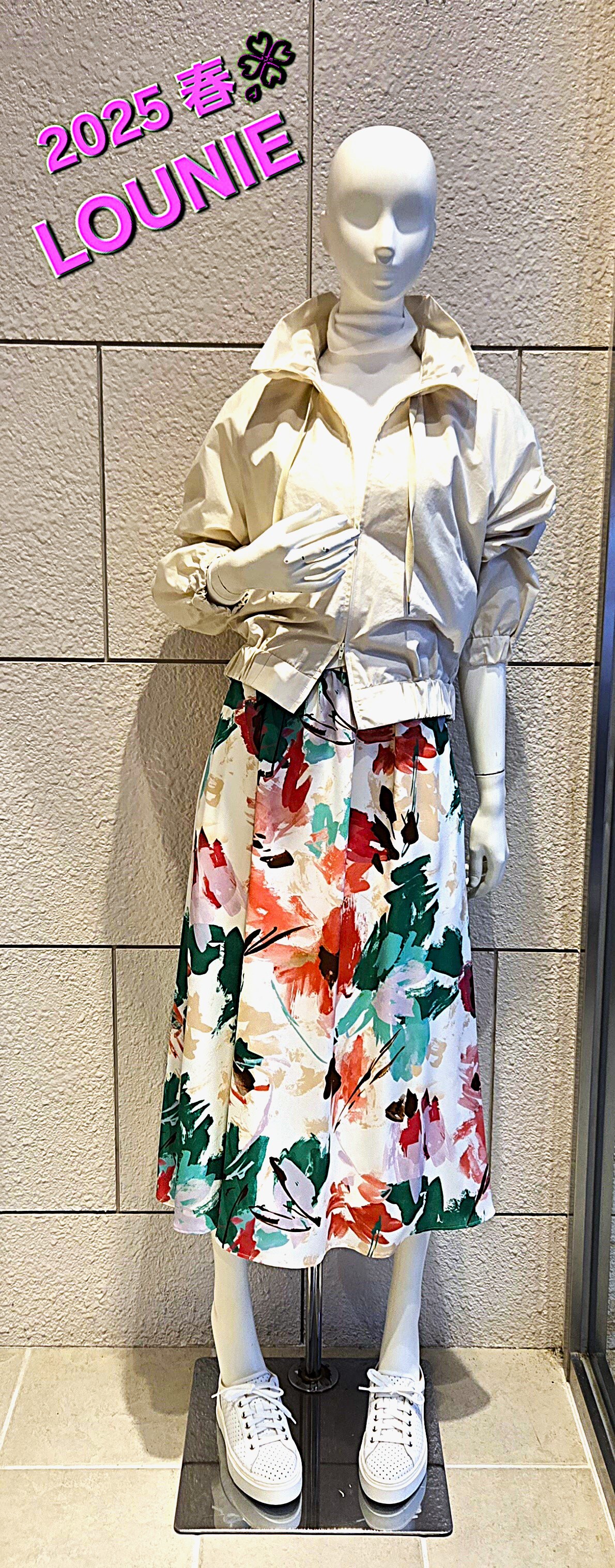 ♡ 少し暖かい方面へお出かけされるご予定の方へ♥ 素材も軽くシワになりにくいポリエステル&コットンのブルゾンとポリエステル100%プリントスカート✨ このプリントが一気に春気分を連れて来ます🌸 いずれもご家庭でお洗濯が可能です。